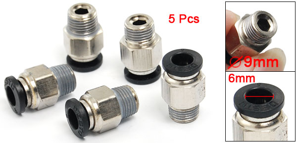 Item Name Quick Fittings Total Size 21 x 12mm/ 0.82" x 0.47"(L*W) Thread Diameter 9mm/ 0.354" Inner Diameter (Blue End) 6mm/ 0.236" Material Alloy, Plastic Color Black, Silver Tone Weight 35g Package Content 5 x Quick Fittings - Reviews