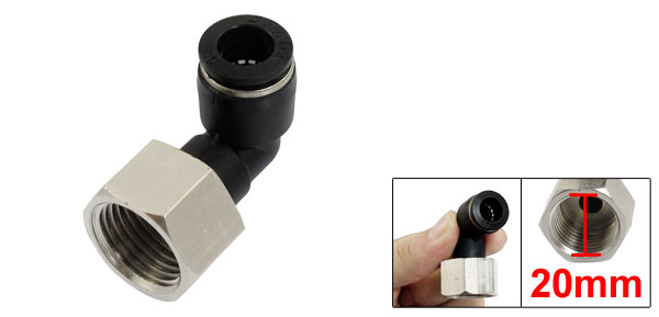 Product Name Quick Fitting Model JPLF10-04 Design L Shaped (90 Degree Elbow) Material Plastic, Metal Thread Size 1/2" PT Thread Diameter 20mm Tube Diameter 10mm Total Size (Approx) 44 x 32 x 24mm/ 1.7" x 1.3" x 0.9" (L*W*H) Color Black Weight 43g Package Content 1 x Quick Fitting - Reviews