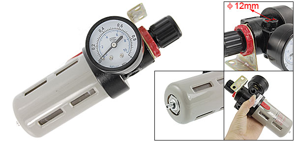 Product Name Air Source Treatment Material Metal, Plastic Working Medium Air Max. Pressure 9.9kgf/cm2 Adjustable Pressure Range 0.5-9.0 kg/cm² Joint Pipe Bore 12mm/ 0.5" Pressure Gauge Connector Dia 12mm/ 0.5" Pressure Gauge Range 0-10 kg/cm² Drain Bowl Capacity 60cc Total Size 20.5 x 6cm / 8.1" x 2.4"(D*T) Pressure Gauge Size 5.1 x 2.7cm/2" x 1.1"(D*T) Color Black, Gray Weight 421g Package Content 1 x Air Source Treatment