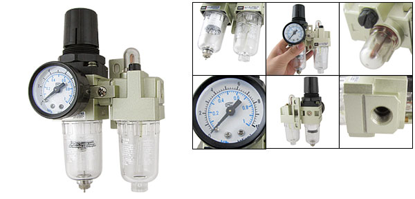 Product Name Air Source Treatment Unit Model No. AC2010-02 Working Medium Air Working Pressure Max 1.0MPa Operating Temperature Max 60°C Adjustable Pressure Range 0.05-0.85MPa Thread Port Dia 11mm / 0.433" Pressure Gauge Range 0-10kgf/cm² 0-1MPa Total Size 9 x 8 x 16cm / 3.5" x 3.1" x 6.3" (L*W*H) Color As Picture Shown Weight 435g Package Content 1 x Air Source Treatment Unit - Reviews