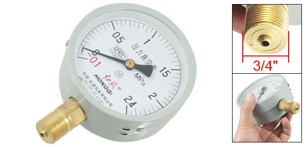 Product Name Compound Gauge Pressure Intensity -0.1-2.4Mpa Accuracy Class Class 1.6 (+/-1.6% fsd) Connector Type 3/4"(1.9cm) Threaded Male NPT Size 9.7 x 4.5cm/ 3.8" x 1.8" (D*T) Dial Color White Exterior Material Metal Net Weight 370g Package 1 x Compound Gauge - Reviews