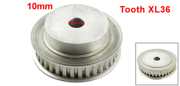 Product Name Timing Pulley Number of Tooth XL36 Pitch 5.08mm/2" Flange 2 Sides Bore Diameter 10mm/ 0.24" Fit Belt Width 12mm/0.47" Overall Size 62 x 25mm/2.1" x 1"(D*H) Material Aluminum Alloy Color Silver Tone Weight 150g Package Content 1 x Timing Pulley - Reviews