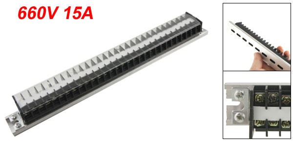 Aluminum Base Dual Row 30 Position Screw Terminal Barrier Strip 660V 15A