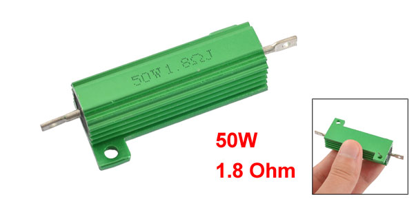 Product Name Aluminum Housed Resistor Resistance Value 1.8 Ohm Power Rating 50W Resistance Tolerance ± 5% (J) Body Size 49 x 15mm/ 1.9" x 0.6" (L*D) Mounted Hole Size 3.5mm/0.137" Total Size 72 x 22 x 15mm/ 2.8" x 0.9" x 0.6" (L*W*T) Casing Material Aluminum Color Green Weight 25g Package Content 1 x Aluminum Housed Resistor - Reviews
