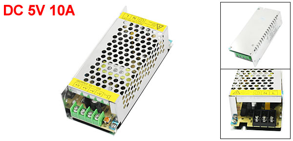 Product Name LED Switching Power Supply Input AC 100-240V 50/60Hz Output DC 5V 10A Body Size 14.3 x 5.8 x 4cm/5.6" x 2.3" x 1.6"(L*W*H) Fixing Hole Dia 3mm/0.12" External Material Aluminum External Color Silver Tone Total Weight 250g Package Content 1 x LED Switching Power Supply - Reviews