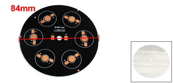 Product Name LED Aluminum PCB Circuit Board Fit for 6pcs x 1W/3W/5W LED(Series) Diameter 84mm/ 3.3" Thickness 1.5mm/0.06" Net Weight 19g Materials Aluminum Main Color Black, Silver Tone Package Content 1 x LED Aluminum PCB Circuit Board - Reviews