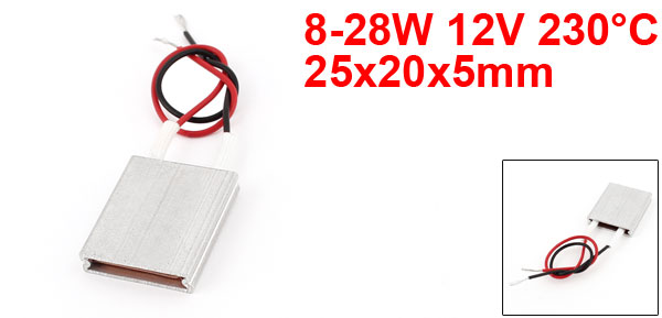 Product Name PTC Heater Material Aluminum Voltage 12V Power 8-28W Temperature 230 Celsius Size 25x20x5mm / 1" x 0.8" x 0.2"(L*W*T) Weight 8g Package Content 1 x PTC Heater - Reviews
