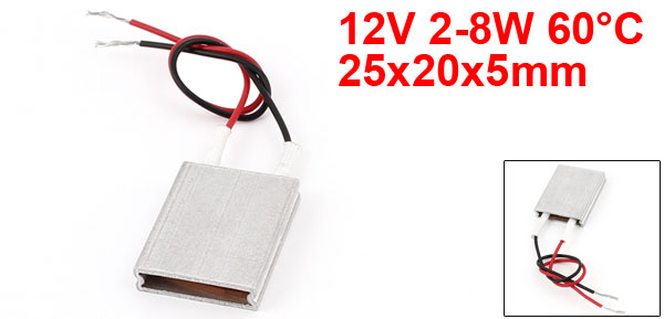 Product Name PTC Heater Material Aluminum Voltage 12V Power 2-8W Temperature 60 Celsius Size 25x20x5mm / 1" x 0.8" x 0.2"(L*W*T) Weight 8g Package Content 1 x PTC Heater - Reviews