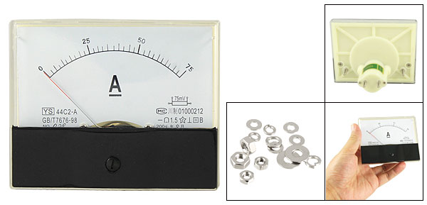 DC Current Panel Meter Model No. 44C2-A Scale Range DC 0~75A Accuracy Class 1.5 Back Screw Diameter 3mm/ 0.12" & 4mm/ 0.16" Panel Size 9.7 x 7.9 x 1.2cm/ 3.8" x 3.1" x 0.5" (L*W*T) Overall Depth 6.1cm/ 2.4" Color White & Black Main Material Plastic & Metal Net Weight 105g Package 1 x DC Current Panel Meter - Reviews