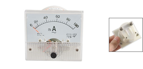 Product Name Milliampere Panel Meter Scale Range 0-100MA Accuracy Class 2.5 Material Plastic Color White, Clear, Beige Back Screw Dia. 3.8 mm / 0.15" & 2.8 mm / 0.11" Panel Size 6.3 x 5.5 x 1.1 cm / 2.5" x 2.2" x 0.4" (L*W*T) Overall Depth 6 cm / 2.36" Weight 97g Package Content 1 x AC Milliampere Panel Meter - Reviews