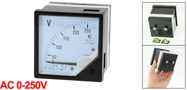 AC Voltage Panel Meter Model No. 6L2-V Scale Range AC 0~250V Accuracy Class 1.5 Back Screw Diameter 2mm/ 0.07", 5mm/ 0.19" Panel Size 8 x 8 x 0.5cm/ 3.1" x 3.1" x 0.2" (L*W*T) Overall Depth 8cm/ 3.1" Color White, Black Main Material Plastic, Metal Net Weight 189g Package 1 x AC Voltage Panel Meter