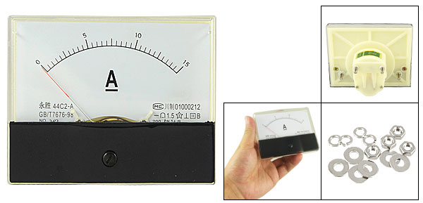 DC Current Panel Meter Model No. 44C2-A Scale Range DC 0~15A Accuracy Class 1.5 Back Screw Diameter 4mm/ 0.16" Panel Size 9.7 x 7.9 x 1.2cm/ 3.8" x 3.1" x 0.5" (L*W*T) Overall Depth 6.1cm/ 2.4" Color White & Black Main Material Plastic & Metal Net Weight 114g Package 1 x DC Current Panel Meter Simple Installation Screws - Reviews