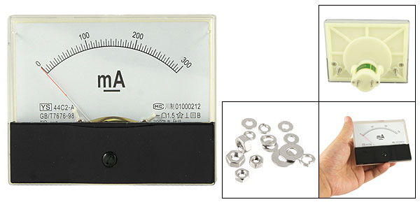 DC Current Panel Meter Model No. 44C2-A Scale Range DC 0~300mA Accuracy Class 1.5 Back Screw Diameter 3mm/ 0.12" & 4mm/ 0.16" Panel Size 9.7 x 7.9 x 1.2cm/ 3.8" x 3.1" x 0.5" (L*W*T) Overall Depth 6.1cm/ 2.4" Color White & Black Main Material Plastic & Metal Net Weight 110g Package 1 x DC Current Panel Meter Simple Installation Screws - Reviews