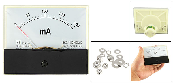 DC Current Panel Meter Model No. 44C1-A Scale Range DC 0~200mA Accuracy Class 1.5 Back Screw Diameter 3mm/ 0.12" & 4mm/ 0.16" Panel Size 9.7 x 7.9 x 1.2cm/ 3.8" x 3.1" x 0.5" (L*W*T) Overall Depth 6.1cm/ 2.4" Color White & Black Main Material Plastic & Metal Net Weight 103g Package 1 x DC Current Panel Meter Simple Installation Screws - Reviews