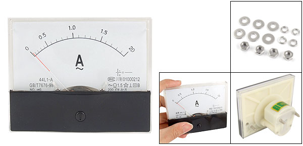 Product Name Analog Ammeter Model 44L1-A Type AC Accuracy Class 2.5 Measuring Current Range AC 0-2A Total Size 9.8 x 7.8 x 6.5cm/3.9'' x 3.1'' x 2.6'' (L*W*H) Base Size(Not Included Screw) 4.9 x 3.6 x 3.3cm/1.9'' x 1.4'' x 1.3'' (L*W*H) Thread Dia. 0.4cm/0.16'' Material Pllastic Color Black, Clear Net Weight 146g Package Content 1 x AC Analog Ammeter