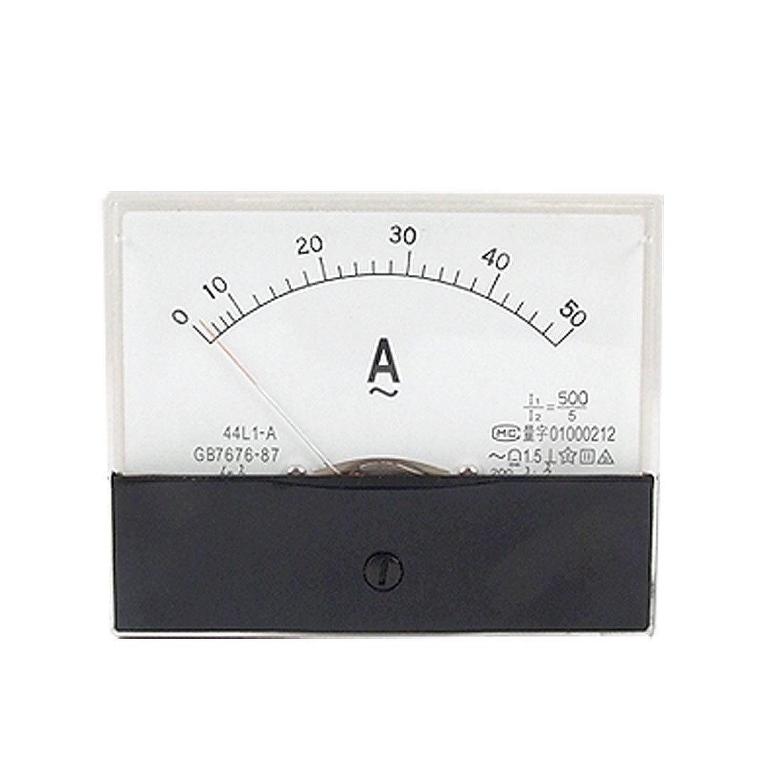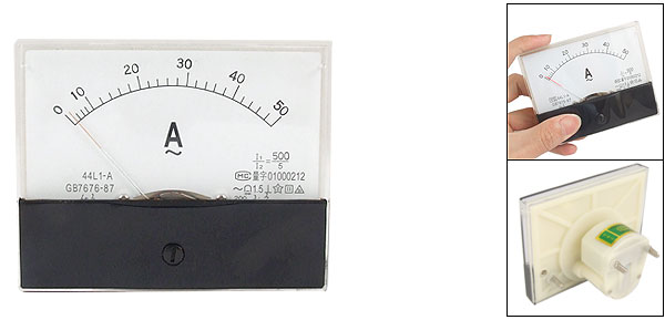 Product Name Analog Ammeter Model 44L1-A Type AC Accuracy Class 2.5 Measuring Current Range AC 0-50A Total Size 9.8 x 7.8 x 6.5cm/3.9'' x 3.1'' x 2.6'' (L*W*H) Base Size(Not Included Screw) 4.9 x 3.6 x 3.3cm/1.9'' x 1.4'' x 1.3'' (L*W*H) Thread Dia. 0.4cm/0.16'' Material Pllastic Color Black, Clear Net Weight 143g Package Content 1 x AC Analog Ammeter