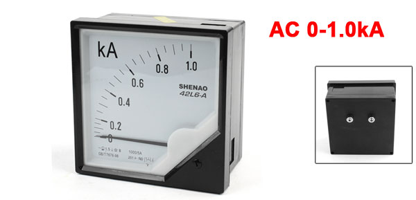 Product Name Analog Ammeter Model 42L6-A Measuring Range AC 0-1.0kA Accuracy Class 2.5 Meter Face Size(Approx) 95 x 95 x 14mm / 3.7" x 3.7" x 0.55" (L*W*T) Thread Size 3 x 19mm / 0.1" x 0.7" (D*L)