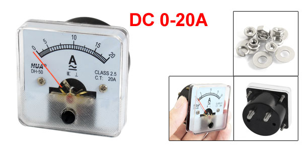 Product Name Analog Ammeter Model No. DH-45 Measuring Current Range AC/DC 0-20A Accuracy Class 2.5 Meter Face Size(Approx.) 5 x 5 x 1cm / 2" x 2" x 0.4"(L*W*T) Thread Size 0.5 x 1cm / 0.2" x 0.4"(Dia.*L) Overall Depth 4.5cm/1.7" Material Plastic, Electronic Components Color White Net Weight 51g Package Content 1 x Analog Ammeter Several Installing Parts - Reviews