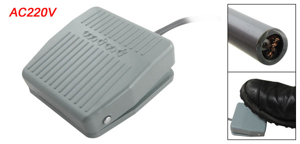 Product Name Foot Pedal Switch Model VFS-201 Contact Type SPDT (NO NC) Action Type Momentary Rated Voltage / Current AC 220V 10A Pedal Size (Approx.) 8.2 x 8 x 3.5 cm / 3.2" x 3.1" x 1.3" (L* W * T) Material Plastic Color Gray Cable Length 21.5cm / 8.4" (Built in 3-Wire) Weight 85g Package Content 1 x Foot Pedal Switch - Reviews