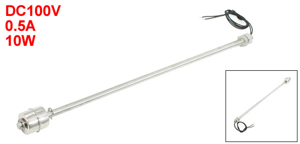 Product Name Water Level Sensor Float Ball Material Stainless Steel Float Body Material Stainless Steel Voltage, Current, Power DC100V, 0.5A, 10W Contacts NO + NC Max Breakdown Voltage/ Max Carry Current 220V 1.0A Max Contact Resistance 100mΩ Temperature Rating -10 to +85 Degree Float Ball Size 2.6 x 2.6cm / 1" x 1" (H*D) Screw Thread Diameter 9.5mm/ 0.37" Rod Diameter 8mm/ 0.3" Body Total Length 37.5cm/ 14.7" Cable Length 30cm/ 11.8" Color Silver Tone Weight 98g Package Content 1 x Water Level Sensor - Reviews