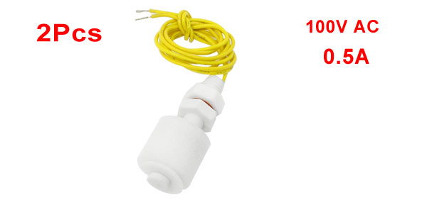 Product Name Float Switch Model No. ZP3208 Rated Power 10W Max Switching Voltage 100V AC Max Switching Current 0.5A Max Contact Resistance 100mΩ Temperature Rating -10 ~ +60 °C Material PVC Float Ball Size(Approx) 17 x19mm / 0.67" x 0.74"(L*D) Thread Dia(Approx) 7mm / 0.27" Body Length 45mm / 1.3" Cable Length 36cm / 14" Color White, Yellow Net Weight 22g Package Content 2 x Float Switch - Reviews