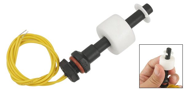 Product Name Water Level Sensor Model No. ZP3208-P Max Contact Rating 10W Max Switching Voltage 100V DC Max Switching Current 0.5A Max Breakdown Voltage 220V DC Max Carry Current 1.0A Max Contact Resistance 100mΩ Temperature Rating -10 ~ +60 °C / 85 °C Float Ball Material PP Float Body Material PP Float Ball Size(Approx) 15.3 x 23.5mm / 0.602" x 0.925"(L*D) Thread Dia(Approx) 9.6mm / 0.378" Nut Dia(Approx) 16.8mm / 0.661" Bottom Clip Dia(Approx) 15mm / 0.591" Body Total Length(Approx) 71.8mm / 2.8" Cable Length 34cm / 13.4" Color White, Black Net Weight 13g Package Content 1 x Water Level Sensor - Reviews