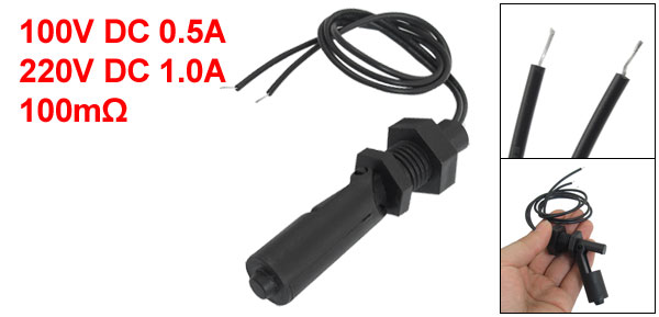 Product Name Float Switch Max Contact Rating 10W Max Switching Voltage 100V DC Max Switching Current 0.5A Max Breakdown Voltage 220V DC Max Carry Current 1.0A Max Contact Resistance 100mΩ Temperature Rating -10 ~ +60 °C / +85 °C Float Ball Material PP Float Body Material PP Float Ball Size(Approx) 27 x 17mm / 1.1" x 0.7"(L*D) Thread Dia(Approx) 15mm / 0.6" Hex Head Size(Approx) 27mm / 1.1" Body Total Length 89mm / 3.5" Cable Length 39cm / 15.3" Color Black Net Weight 21g Package Content 1 x Float Switch - Reviews