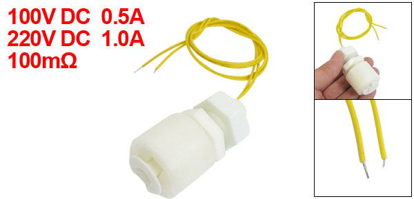 Product Name Float Switch Max Contact Rating 10W Max Switching Voltage 100V DC Max Switching Current 0.5A Max Breakdown Voltage 220V DC Max Carry Current 1.0A Max Contact Resistance 100mΩ Temperature Rating -10 ~ +60 °C / +85 °C Float Ball Material PP Float Body Material PP Float Ball Size(Approx) 24 x 30mm / 0.9" x 1.2"(L*D) Thread Dia(Approx) 13mm / 0.5" Hex Nut Diameter 28mm / 1.1" Bottom Clip Dia(Approx) 20mm / 0.5" Body Total Length 60mm / 2.4" Cable Length 36cm / 14.2" Color White, Yellow Net Weight 25g Package Content 1 x Float Switch - Reviews