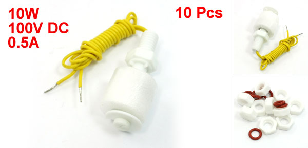 Product Name Water Level Sensor Model No. ZP3508 Max Contact Rating 10W Max Switching Voltage 100V DC Max Switching Current 0.5A Max Breakdown Voltage 220V DC Max Load Current 1A Max Contact Resistance 100mΩ Temperature Rating -10 / +85 °C Float Ball Material P.P Float Body Material P.P Thread Dia(Approx) 8mm / 0.32" Switch Body Size 19 x 46mm / 0.75" x 1.81"(Max D*H) Cable Length 36cm / 14.2" Color White Net Weight 100g Package Content 10 x Water Level Sensor - Reviews