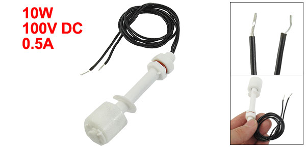 Product Name Float Switch Max Contact Rating 10W Max Switching Voltage 100V DC Max Switching Current 0.5A Max Breakdown Voltage 220V DC Max Carry Current 1.0A Max Contact Resistance 100mΩ Temperature Rating -10 ~ +60 °C / +85 °C Float Ball Material PP Float Body Material PP Float Ball Size(Approx) 19 x 16mm / 07" x 0.5"(L*D) Thread Dia(Approx) 7mm / 0.3" Hex Nut Diameter 14mm / 0.55" Bottom Clip Dia(Approx) 15mm / 0.6" Body Total Length 75mm / 3" Cable Length 38cm / 15" Color White, Black Net Weight 12g Package Content 1 x Float Switch - Reviews