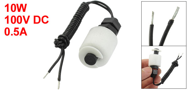 Product Name Float Switch Max Contact Rating 10W Max Switching Voltage 100V DC Max Switching Current 0.5A Max Breakdown Voltage 220V DC Max Carry Current 1.0A Max Contact Resistance 100mΩ Temperature Rating -10 ~ +60 °C / +85 °C Float Ball Material PP Float Body Material PP Float Ball Size(Approx) 19 x 17mm / 0.7" x 0.7"(L*D) Thread Dia(Approx) 7mm / 0.3" Hex Nut Diameter 14mm / 0.55" Bottom Clip Dia(Approx) 15mm / 0.6" Body Total Length 45mm / 1.8" Cable Length 36cm / 14.2" Color White, Black Net Weight 9g Package Content 1 x Float Switch - Reviews