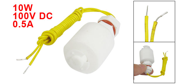 Product Name Float Switch Max Contact Rating 10W Max Switching Voltage 100V DC Max Switching Current 0.5A Max Breakdown Voltage 220V DC Max Carry Current 1.0A Max Contact Resistance 100mΩ Temperature Rating -10 ~ +60 °C / +85 °C Float Ball Material PP Float Body Material PP Float Ball Size(Approx) 22 x 24mm / 0.86" x 0.94"(L*D) Thread Dia(Approx) 8mm / 0.31" Hex Nut Diameter 12mm / 0.47" Bottom Clip Dia(Approx) 13mm / 0.51" Body Total Length 50mm / 2" Cable Length 35cm / 13.7" Color White, Yellow Net Weight 12g Package Content 1 x Float Switch - Reviews