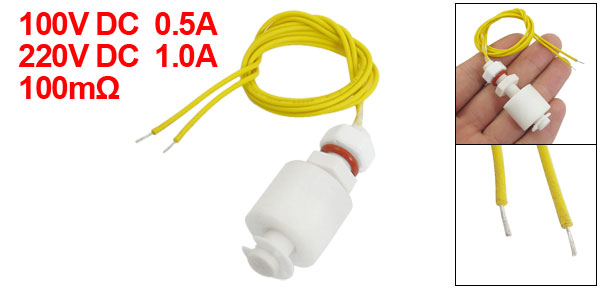 Product Name Float Switch Max Contact Rating 10W Max Switching Voltage 100V DC Max Switching Current 0.5A Max Breakdown Voltage 220V DC Max Carry Current 1.0A Max Contact Resistance 100mΩ Temperature Rating -10 ~ +60 °C / +85 °C Float Ball Material PP Float Body Material PP Float Ball Size(Approx) 17 x 19mm / 0.7" x 0.7"(L*D) Thread Dia(Approx) 7.5mm / 0.3" Hex Nut Diameter 14mm / 0.55" Bottom Clip Dia(Approx) 13mm / 0.5" Body Total Length 46mm / 1.8" Cable Length 36cm / 14.2" Color White, Yellow Net Weight 9g Package Content 1 x Float Switch - Reviews