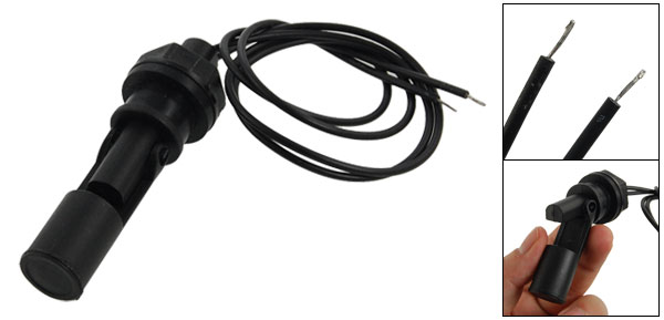Product Name Water Level Sensor Contacts NO+NC Max Contact Rating 10W Max Switch Voltage 100V DC Max Switch Current 0.5A Max Breakdown Voltage 220V DC Max Carry Current 1.0A Max Contact Resistance 100mΩ Temperature Rating -10 ~ +85 Degree Float Ball Material P.P Float Body Material Plastic Float Body Size 50.5 x 17mm(L*D) Screw Thread Diameter 19.5mm Washered Nut Diameter 23.5mm Breaking Height 45mm Breaking Angle 45° Body Total Length 90mm Cable Length 35cm Color Black Weight 26g Package Content 1 x Water Level Sensor - Reviews