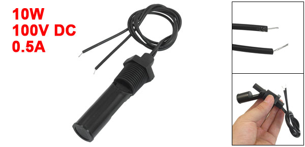 Product Name Float Switch Max Contact Rating 10W Max Switching Voltage 100V DC Max Switching Current 0.5A Max Breakdown Voltage 220V DC Max Carry Current 1.0A Max Contact Resistance 100mΩ Temperature Rating -10 ~ +60 °C / +85 °C Float Ball Material PP Float Body Material PP Float Ball Size(Approx) 24 x 17mm /0.94" x 0.7"(L*D) Thread Dia(Approx) 20mm/1/2" NPT Hex Nut Diameter 23mm /0.9" Body Total Length 85mm / 3.3" Cable Length 39cm / 15.3" Color Black Net Weight 23g Package Content 1 x Float Switch - Reviews