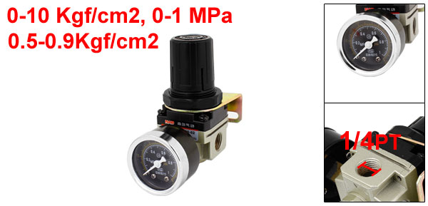 Product Name Pneumatic Regulator Model AR2000-02 Material Metal, Plastic Working Medium Air Max. Pressure 9.9Kgf/cm2 Adjustable Pressure Range 0.5-0.9Kgf/cm2 Joint Pipe Bore Diameter 13mm Joint Pipe Bore Size 1/4PT Pressure Gauge Connector Dia 10mm/ 0.39" Pressure Gauge Range 0-10 Kgf/cm2, 0-1 MPa Total Size 8.5 x 7.5 x 5 cm/ 3.4" x 3" x 2" (L*H*W) Pressure Gauge Size 4.1 x 2.5cm/ 1.6" x 0.98" (D*T) Bracket Mount Hole Size 8.4 x 6.5mm/ 0.33" x 0.25"(L*W) Color Black, Silver Tone, Red, Silver Tone Weight 188g Package Content 1 x Pneumatic Regulator