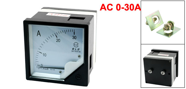 Product Name Analog Ammeter Model 6L2 Measuring Current Range AC 0-30A Accuracy Class 1.5 I1/I2 30/5A Meter Face Size(Approx) 8 x 8cm / 3.1" x 3.1" (L*W) Overall Depth 7.3cm / 2.9" Mounted Size 7.5 x 7.5cm/3" x 3"(L*W) Color White, Clear, Black Net Weight 170g Package Content 1 x Analog Ammeter