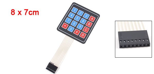 Product Name Numeric Membrane Switch Keyboard Support Computer Type Single Chip Microcomputer Keys Number 16 Cable Length 7cm / 2.8" Keyboard Size 8 x 7cm / 3.1" x 2.8"(L*W) External Material Soft Plastic Color Red,Blue,Black Net Weight 9g Package Content 1 x Numeric Membrane Switch Keyboard