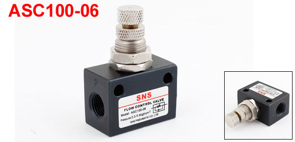 Product Name Pneumatic Speed Controller Model ASC100-06 Hole Dia 4.2mm/ 0.17" Female Thread Diameter 8.56mm / 1/8"PT Total Size 46 x 32 x 17mm / 1.8" x 1.3" x 0.7" (L*W*T) Presure 0.5-9.5kg/cm² Material Plastic, Metal Color Black, Silver Tone Weight 58g Package Content 1 x Pneumatic Speed Controller - Reviews