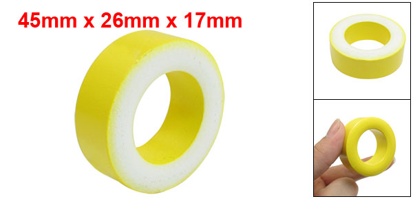 Product Name Ferrite Ring Model AT157-52 Size 45 x 26 x 17mm/1.8" x 1" x 0.7"(D.outter*D.inner*T) Material Ferrite Color Yellow, White Net Weight 105g Package Content 1 x Ferrite Ring - Reviews