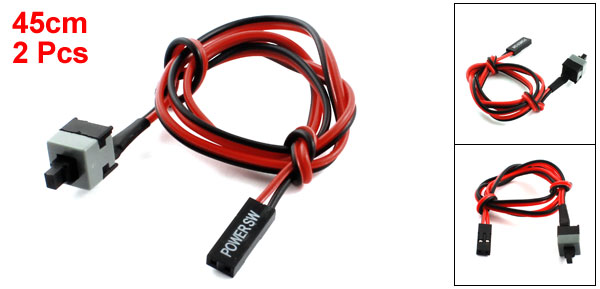 ATX Motherboard Power Momentary Push Button Switch Cable Lead 45cm 2 Pcs