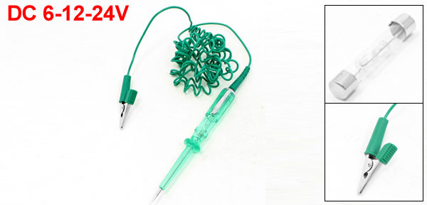 Product Name Car Circuit Voltage Tester Voltage Tester Range DC 6-12-24V Material Metal, Plastic Wire Length (Not Stretch) 70cm / 28" Tester Size 14.2 x 1.5cm / 5.6" x 0.6" (L*Max.D) Clip Jaw Capacity 0.8cm/0.3" Main Color Green Net Weight 62g Package Content 1 x Car Circuit Voltage Tester