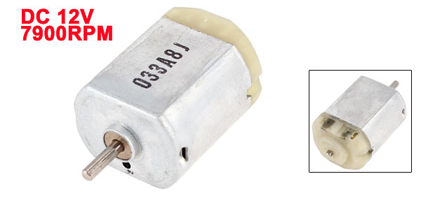 Product Name DC Motor Model FC-140RE Working Voltage 8-16V Rated Voltage DC 12V No Load Speed 7900RPM Current 42mA Torque 10.5g.cm Motor Size 25 x 20 x 15mm/ 1" x 0.8"x 0.59"(L*W*H) Shaft Diameter 2mm Shaft Length 8mm/ 0.31" Main Color Silver Tone Material Metal Weight 22g Package 1 x DC Motor - Reviews