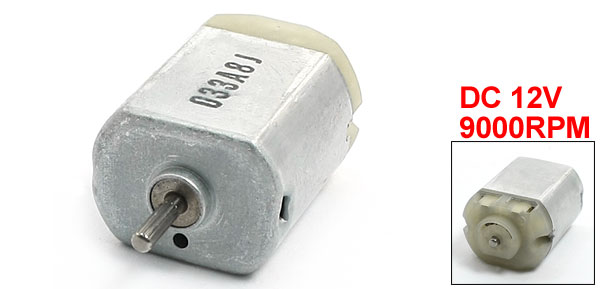 Product Name Micro Motor Model FC-140RE Rated Voltage DC 12V No-load Speed 9000RPM Shaft Dia 2mm/0.08" Body Size 27 x 20mm / 1.1" x 0.8" (L*D) Total Length 35mm / 1.4" Main Color Silver Tone Material Metal, Plastic Weight 22g Package 1 x Micro Motor - Reviews