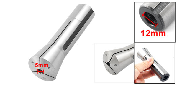 Product Name R8 Spring Collets Main Material Steel Color Black, Silver Tone Style R8-B5 Interior Hole Diameter 5mm/ 1/5" Thread Diameter 12mm/ 15/32" Exterior Diameter Small: 24mm/ 61/64" & Big: 32mm/ 1 4/15" Total Height 10cm/ 3 9/10" Weight 290g Package Content 1 x R8 Spring Collets