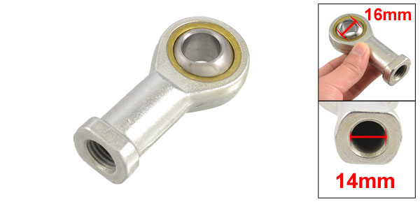 Product Name Rod End Bearing Type SIL16 T/K Connector Type Female Female Socket Dia 14mm/ 0.56" Ball Hole Diameter 16mm/ 0.63" Rod Diameter 27mm / 1.1" Total Size 86 x 40 x 21mm/ 3.4" x 1.6" x 0.83" (L*W*T) Material Metal Main Color Silver Tone Weight 225g Package 1 x Rod End Bearing - Reviews