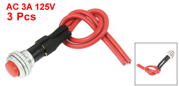 Automobile SPST 2 Wires Red Cap Momentary Push Button Switch 3A 125V 3 Pcs