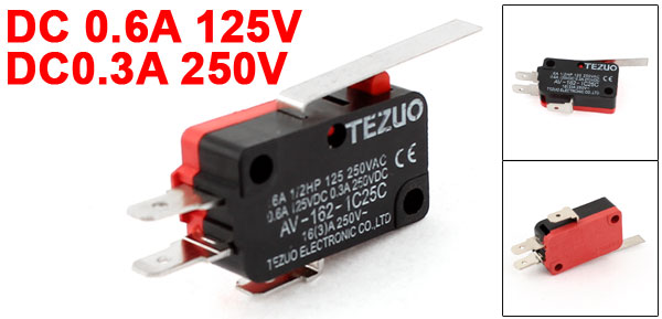 Main Color Black, Red Brand DMiotech Actuator Type Straight Long Hinge Lever Terminals 3 Country of Manufacture CHINA Model AV-162-1C25C Material Plastic, Metal Level Size 4 x 28mm/0.16" x 1.1"(W*L) Contact Configuration 1NO, 1NC(SPDT) Product Name Micro limit Switch Net Weight 8g Rated Voltage DC 0.6A 125V DC0.3A 250V Package Content 1 x Micro Limit Switch Load Voltage AC 16A 1/2HP 125V 250V Actuator Action Momentary Body Size 16 x 28mm/0.63" x 1.1"(L*W) - Reviews