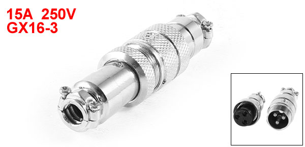 Product Name Aviation Connector Plug Material Metal Model GX16-3 Connector Type Screw Type Pin Quantity 3 Pin (Male and Female) Rated Current / Voltage 15A / 250V Connector Screw Diameter 16mm Total Length 85mm / 3.3" Color Silver Tone Net Weight 32g Package Content 1 x Aviation Connector Plug - Reviews