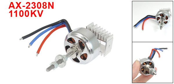 DetailsAX-2308N 1100KV Outrunner Brushless Motor for RC Helicopter Aircraft  Product Name Brushless Motor Model AX-2308N KV 1100RPM/V Fit for Battery 2-3s Li-Po Fit for ESC 15A Screw Thread Diameter 3mm/0.1" Motor Diameter 29 mm/ 1.1" Stator Frame 28 x 24 x 10mm/1.1" x 0.9" x 0.4"(L*W*T) Cable Length 55mm / 2.2" Material Metal, Aluminum, Electronic Parts Color Silver Tone Net Weight 48g Package Content 1 x Brushless Motor